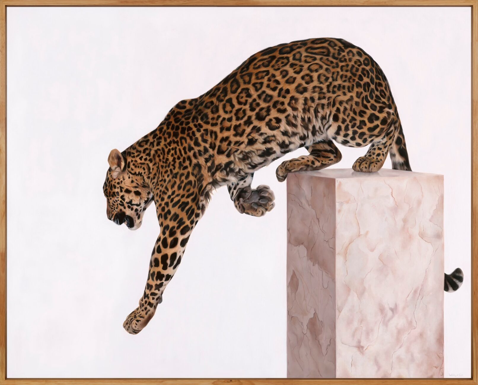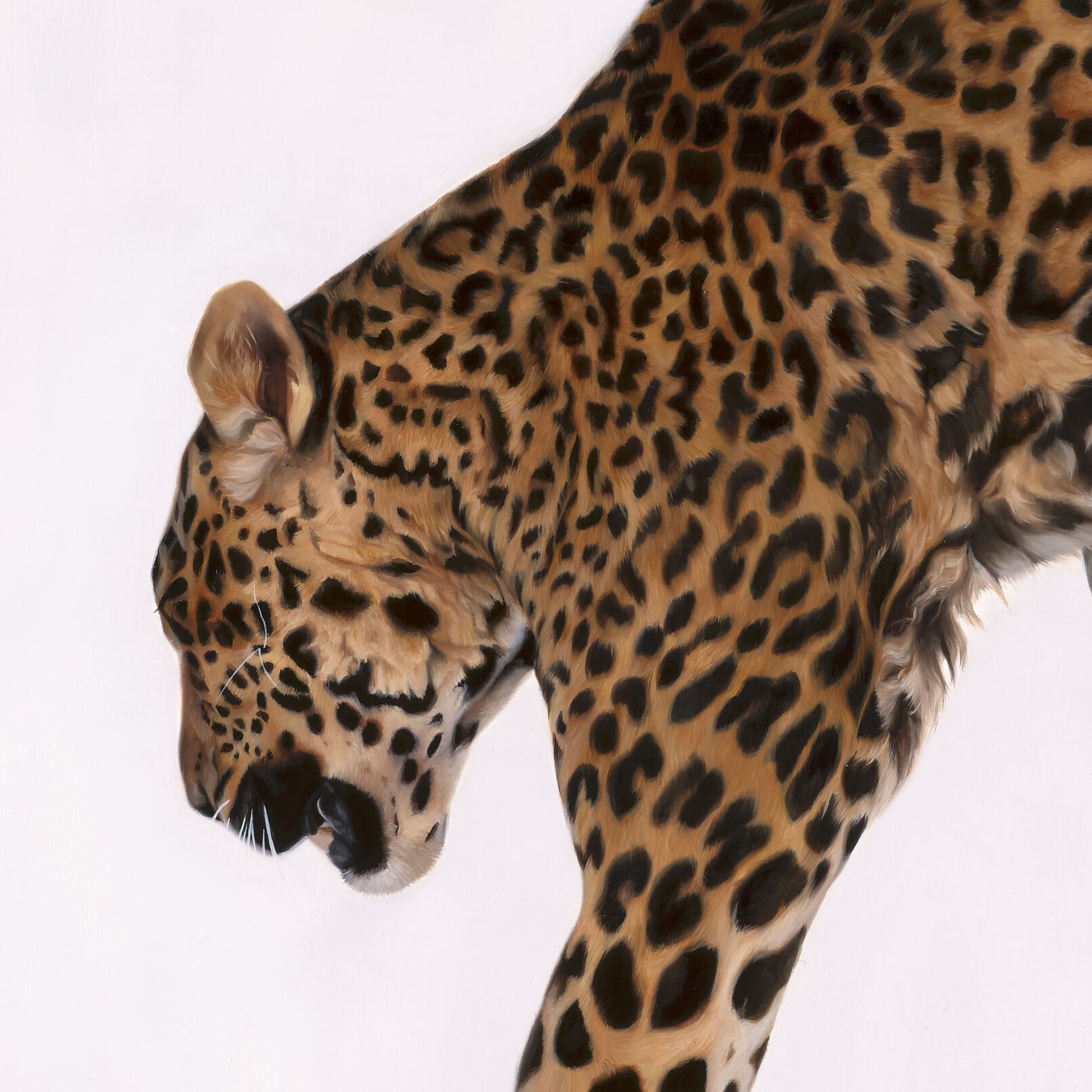 The human – non-human animal relationship is an overarching theme of my art practice. ‘Dionysus’ from the Deities Series explores the Greek Mythology of Dionysus, the god of vegetation, wine, and pleasure, and his sacred animal the Leopard. In the ancient world, humans were not just close to animals but, in most cases, deeply dependent on them. They were embedded in local culture and religion, often seen as gods, and sometimes fused with humans to unlock universal secrets beyond human limitations.